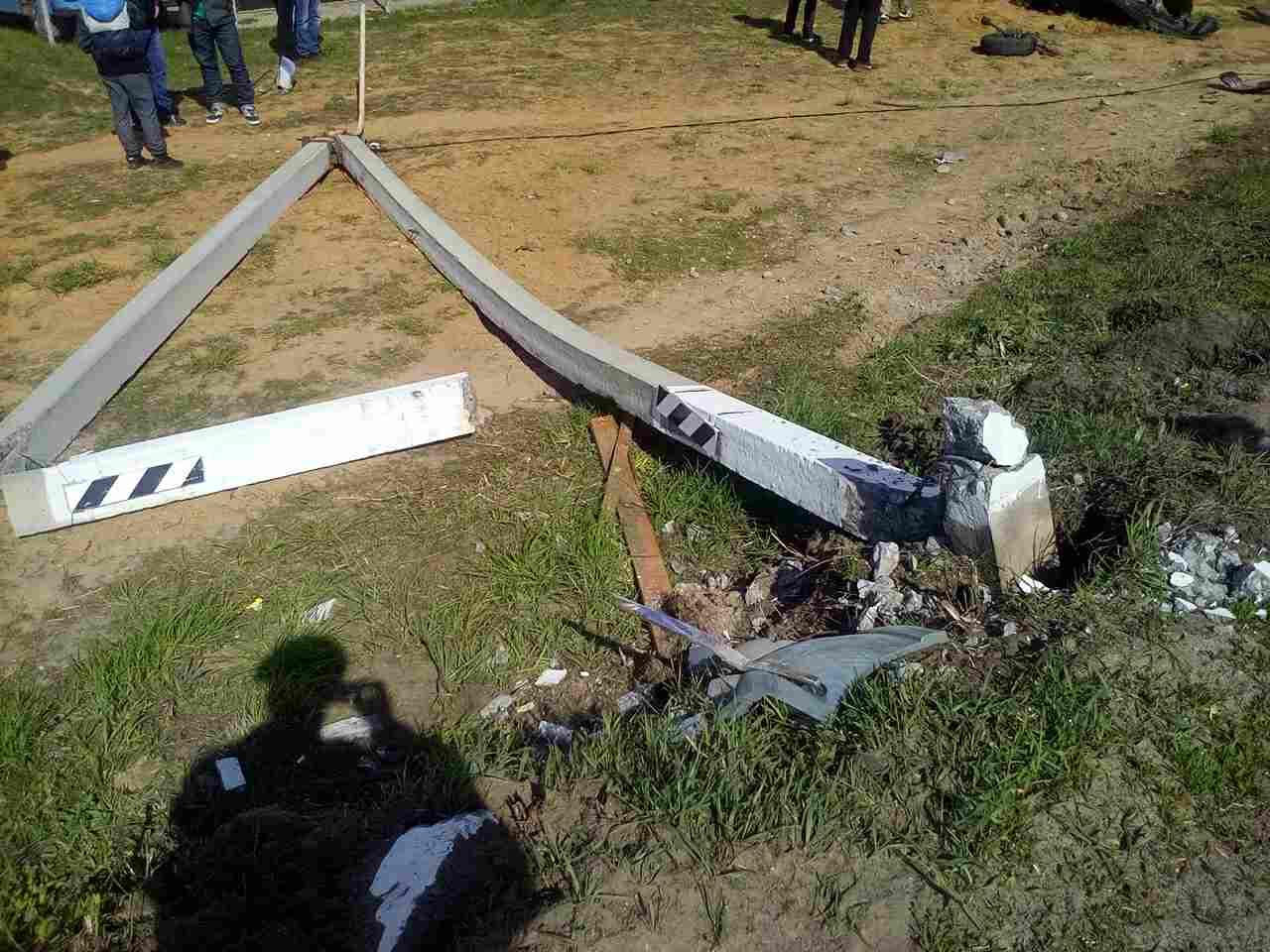 От удара железобетонные конструкции сломались и упали, а автомобиль получил механические повреждения.
